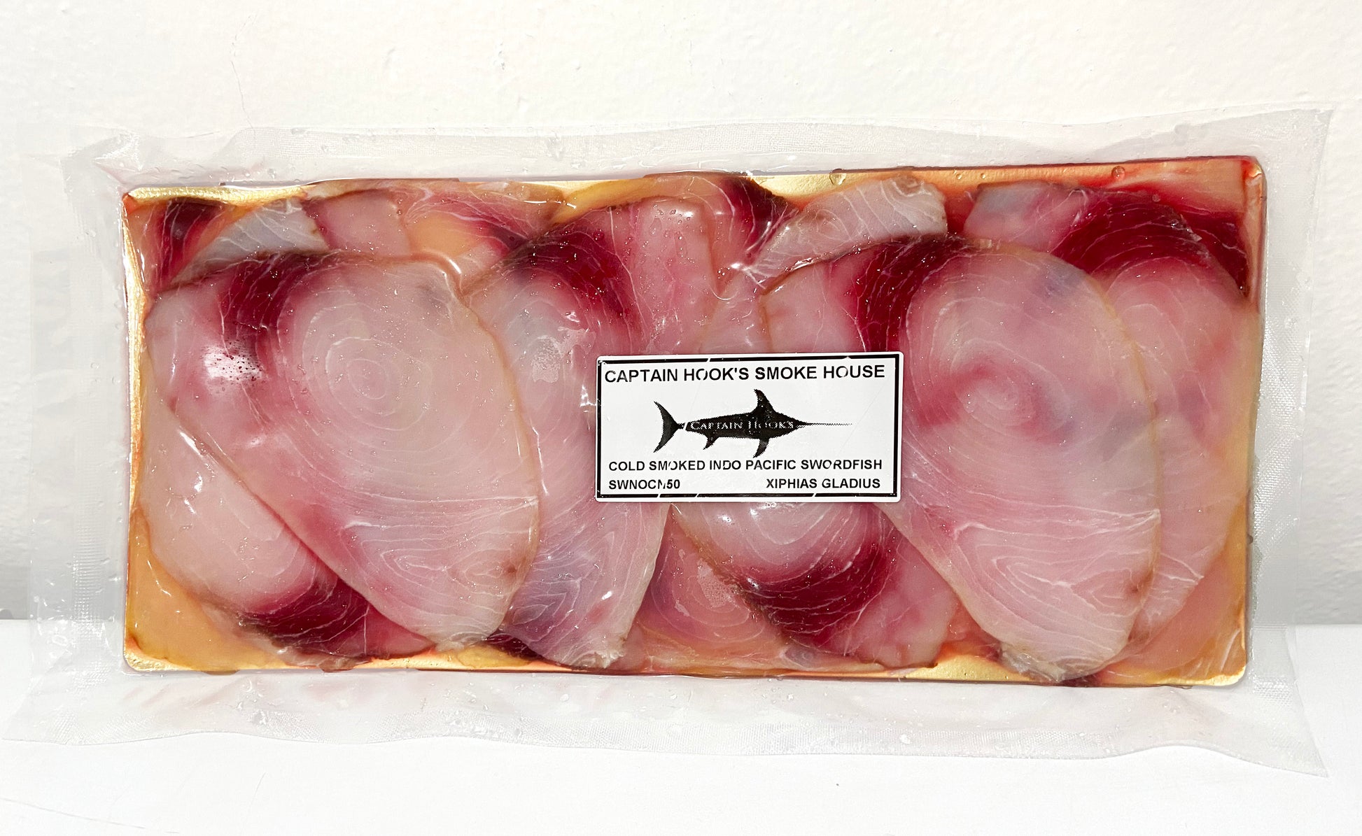Pacific Swordfish Smoked using old family recipe with real beechwood chips. Vaccum seal and packed ready to eat.